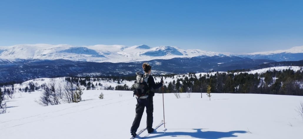 Starting in Skåbu, a small mountain village in Nord-Fron, we move between Langsua Nationalpark and Jotunheimen Nationalpark in little-traveled areas. The landscape is open and wild, shaped by old forests, marshes, and surrounded by mountains. We mostly travel off-trail, creating our own path through the snow.