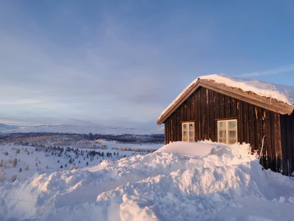 Our final night will be at Sjodalen Hyttetun — a cozy camping ground with heated cabins, electricity, hot showers, and dinner in their special turf hut restaurant.
